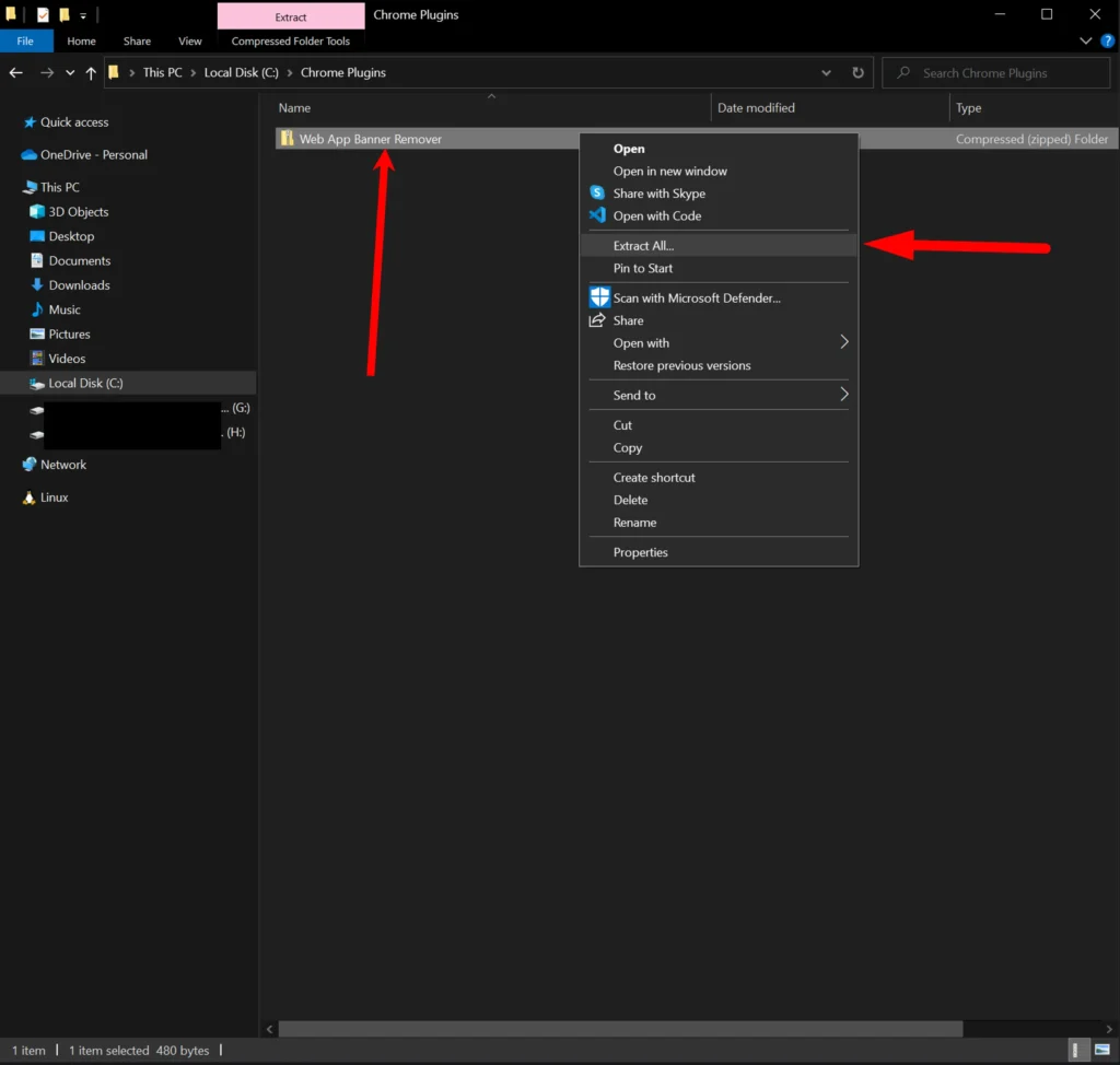 Go to the “C drive” and create a new folder named “Chrome Plugins”
