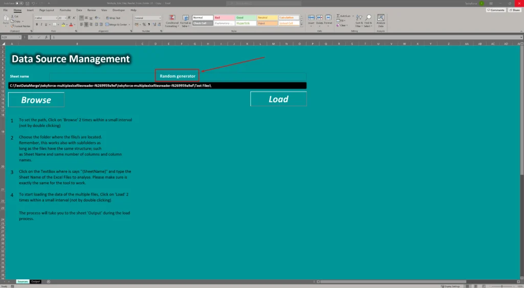 Since the Sheet name for both files is “Random generator” let’s set the sheet name text box in the Excel file to be the same.